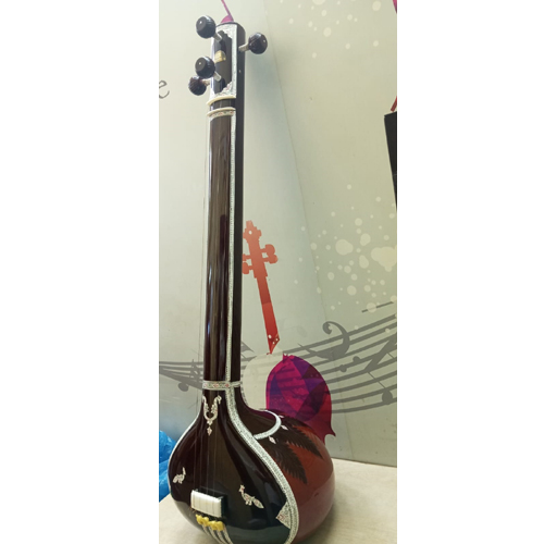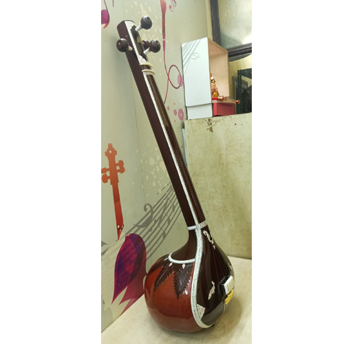 The tanpura (or tambura, tanpuri) is a long-necked plucked string instrument found in various forms in Indian music; it does not play melody but rather supports and sustains the melody of another instrument or singer by providing a continuous harmonic bourdon or drone. A tanpura is not played in rhythm with the soloist or percusionist: as the precise timing of plucking a cycle of four strings in a continuous loop is a determinant factor in the resultant sound, it is played unchangingly during the complete performance. The repeated cycle of plucking all strings creates the sonic canvas on which the melody of the raga is drawn. The combined sound of all strings is very rich in harmonics that will enhance the resonance of the tones sung or played to the accompaniment of a fine tanpura.